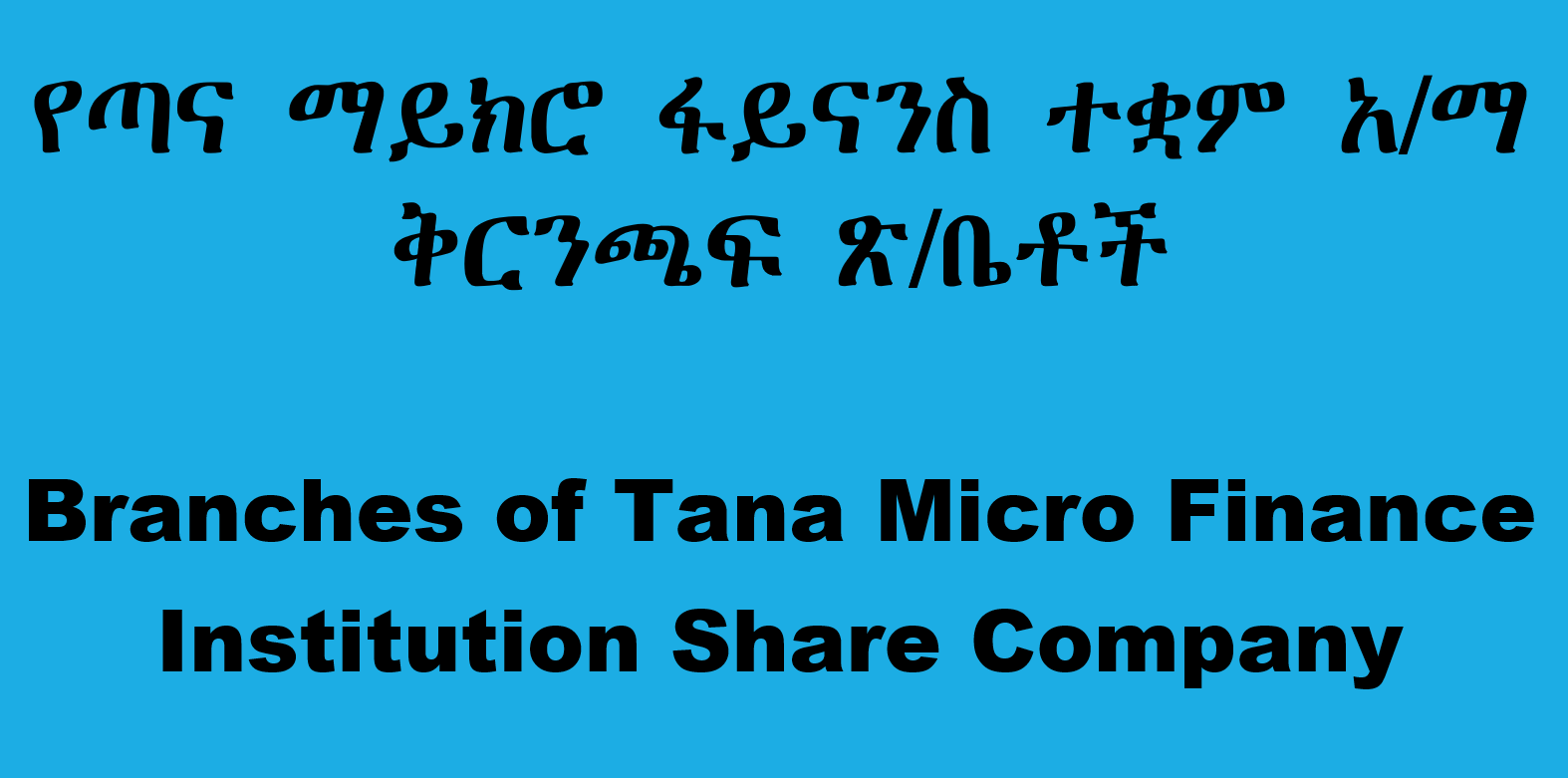 The lists of Tana Micro Finance Institution share Company Branches are listed here with their necessary information for you. We hope that you visit our branches.